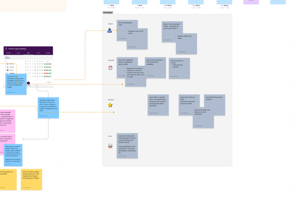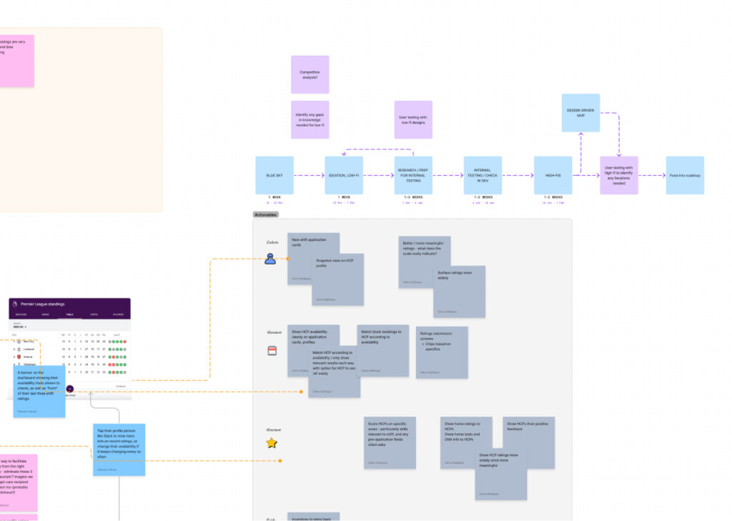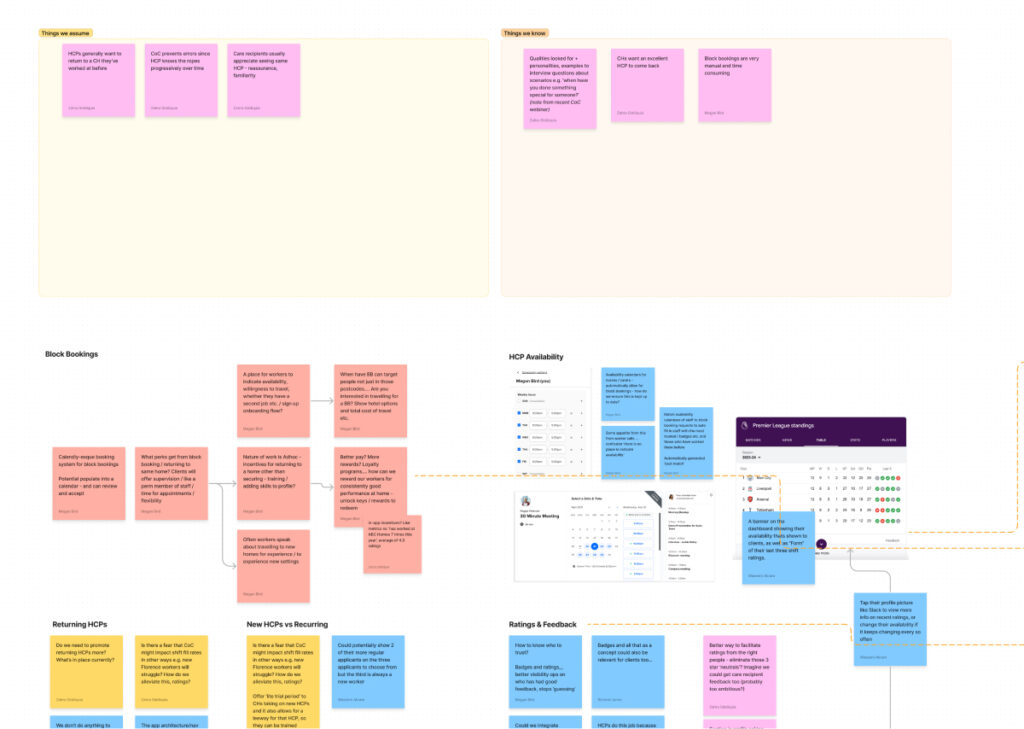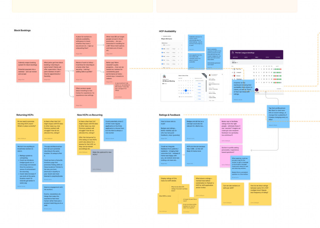 Below is the board for our ‘Continuity of Care’ Guerilla UX Sprint from which many integral features were born such as block bookings, carer availability and improved rating systems on both sides of the shift marketplace.